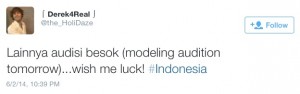 A few days after this issue occurred, Derek went to Jakarta for a modeling audition (still lacking a work visa and also) with his tourist’s visa still expired.